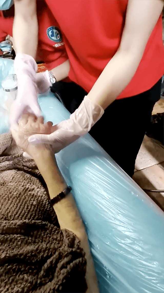 3、專業(yè)沐浴。整個過程,老人無需費力移動,全程躺在或坐在特制的浴床上。助浴師會使用溫和的沐浴產(chǎn)品,用嫻熟的手法為老人清潔身體,同時嚴(yán)密觀察老人的面色和呼吸狀態(tài)。這一切,都在最大程度上保障了安全與舒適。